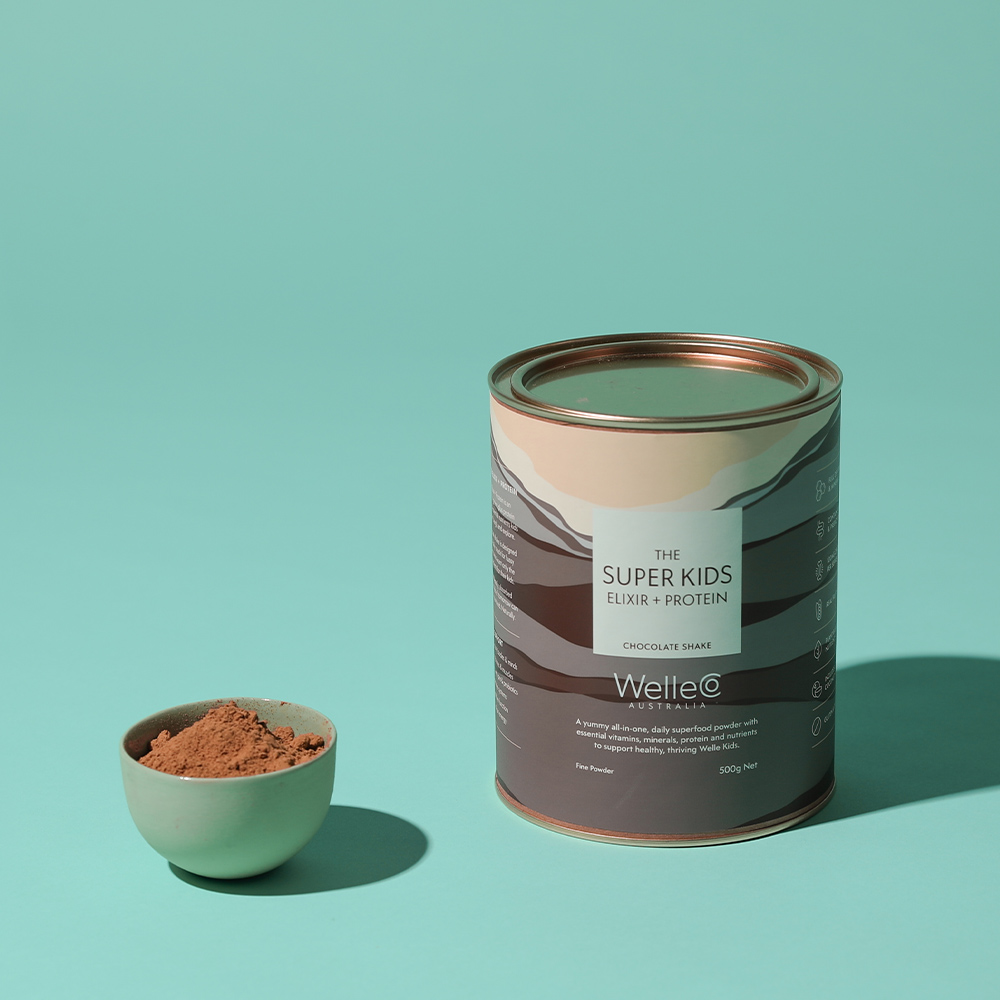 The Super Kids Elixir + Protein is perfect for growing kids aged 4-16, chock-full of vitamins and minerals, probiotics, and real fruit and veggies. We source the finest quality ingredients to support growing bodies for strong bones, clever minds, healthy tummies, and happy tastebuds!
