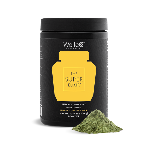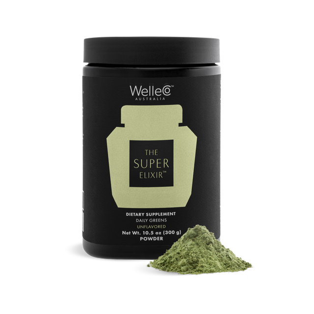 Directions: Using the WelleCo Hydrator Bottle, shake 10g or 2 teaspoons of The Super Elixir™ greens powder with 8.5 fl oz of water, coconut water or almond milk. Blitz into a smoothie for the smoothest consistency. We recommend you take each morning or during the day, not at bedtime.